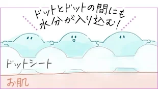 ドット(水玉)模様の凹凸で美容液をしっかり抱え込む力と潤いを逃さず届ける力のベストバランスを探求しました。