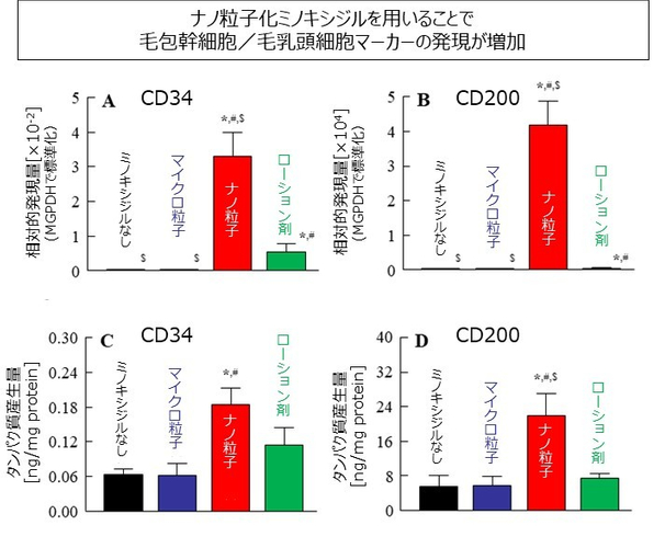 ナノ粒子化ミノキシジル製剤は毛乳頭細胞や毛包幹細胞を効率的に活性化させ、発毛効果を高めることを確認