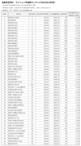 ■全国市区町村 マンション坪単価ランキング100(2021年8月)