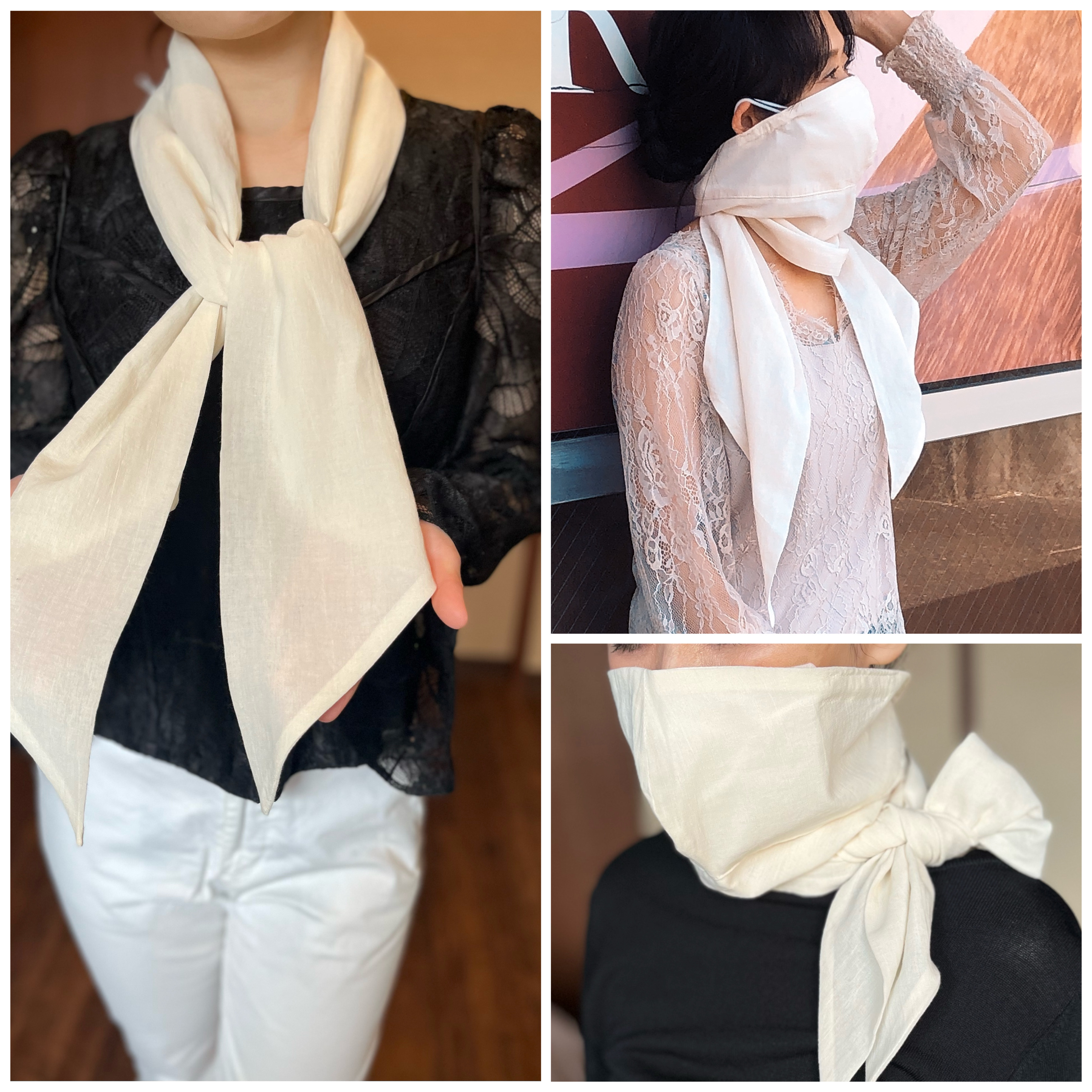 紫外線対策に!山川デザインのフェイスカバー マスクスカーフキュア(意匠登録済み)コロナ禍に開発したフェイスカバーです。結び方を変えアレンジして楽しめるように考案しました!日本製 コットン100%