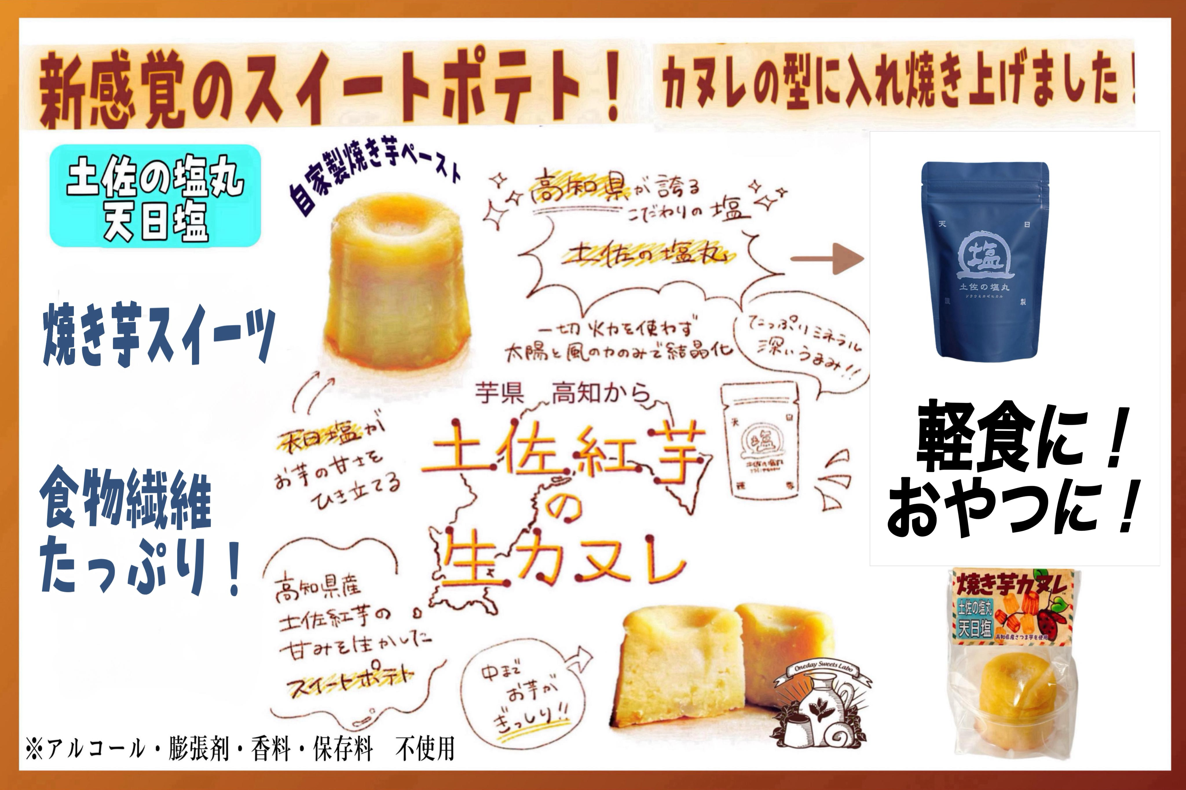 ひまわり乳業の新鮮な高知県産牛乳を使用したプリンやプヂンを独自製法で開発。工場所在地である香美市の希少なサツマイモ・高系4号芋(神池芋)を使用した焼き芋スイーツ「神池芋の生カヌレ」開発、とさレモン、土佐の塩丸天日塩、土佐紅芋、高知県大豊町のブルーベリー使用のチーズケーキなど、高知の食材をふんだんに使用したことで、地元からも大きな支持を得ています。全て、冷凍販売可能で冷凍解凍とは感じさせないクオリティの高さです。