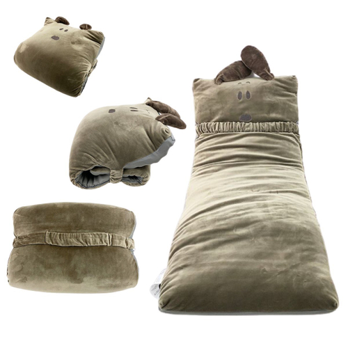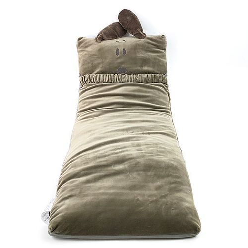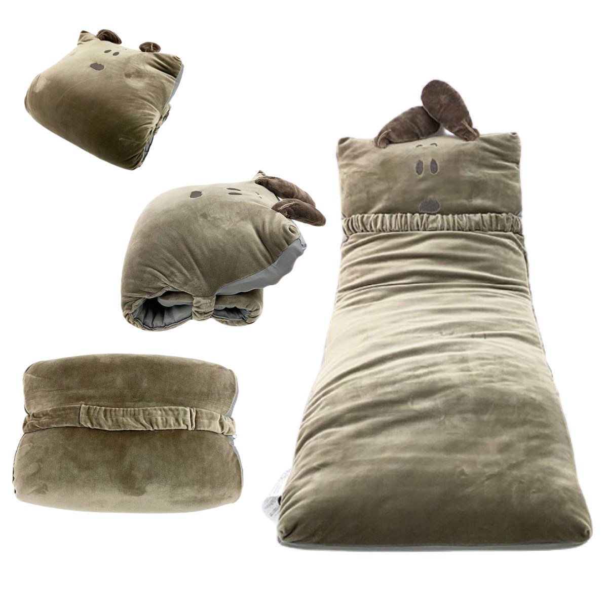 そして、広げるとフラットな状態になり、背もたれとしても使えてしまうんです。お昼寝には最適なサイズ感ですよ。厚みも程よいので、快眠できそうです。