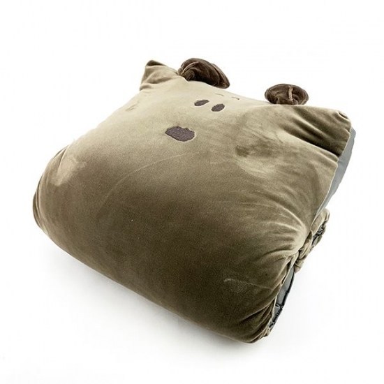 こちらが、おひるねピローです♪ふかふかの素材感に、スヌーピーのパーツがデザインされていて和みます♡カーキ色で、シックな雰囲気もありますね。
