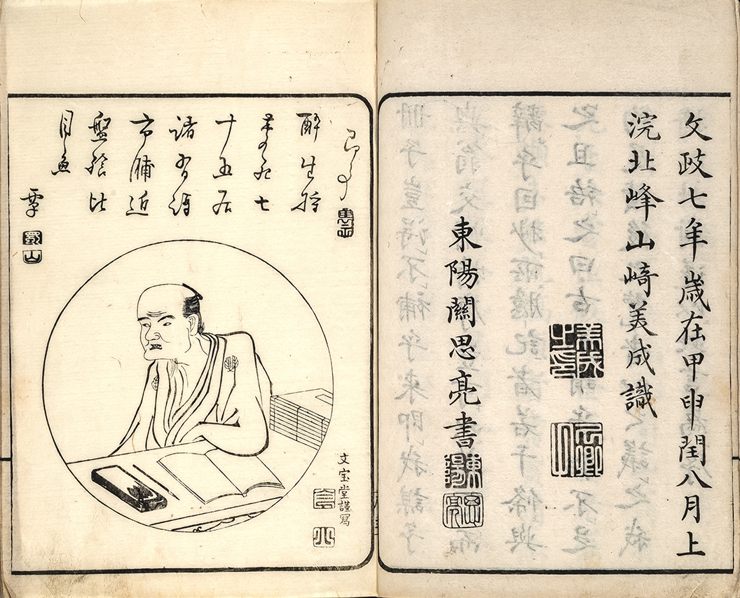 新宿の馬宿の子として生まれ、14歳でたばこ屋を開業しました。文芸をよくし、平賀源内をはじめとする多数の文化人と交友を持ちました。南畝とは内山賀邸(がてい:南畝の師匠)のもとで出会い、南畝の出世作『寝惚先生文集』を刊行へと繋げたのも東作でした。以降も交友は続き、同座した作品も残されています。文芸面以外では、浄土真宗の異端の一派に潜入したり、蝦夷地探索に出たりと一風変わった経歴を持ち、その際の見聞録も残しています。