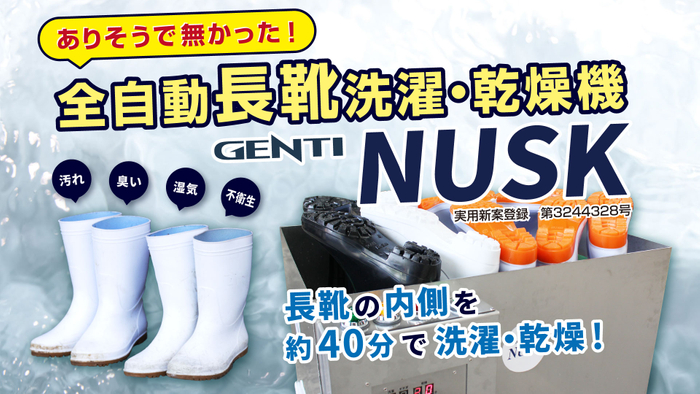 上記のお悩みを解決するためにサンリョウ株式会社が開発した長靴洗濯・乾燥機「GENTI NUSK(ヌスク)」をご紹介します!