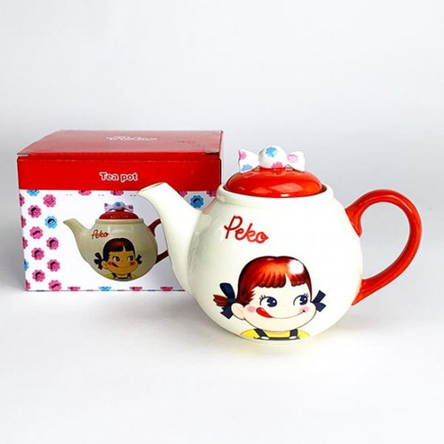 今回は”ペコマグ”と一緒に揃えたいアイテムとしてティーポットもご紹介します。言うなればペコポットでしょうか?丸いフォルムが最高に心をくすぐられますよね♪ペコちゃんのミルキーカラーと赤のコントラストが素敵なポットです。