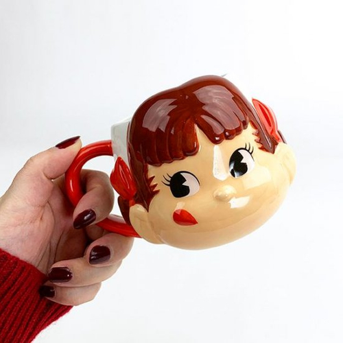 頭の部分が立体的になったペコちゃんのマグカップ、通称”ペコマグ”(筆者が勝手にそう呼んでいるだけですが笑)立体的にするのが難しいお顔ですが、頭やリボン部分が立体的になって登場です!細部までこだわって作られている造形は必見のキュートさ。かわいいだけじゃなく、ちょっとすごいマグカップなんです♪