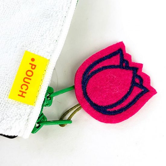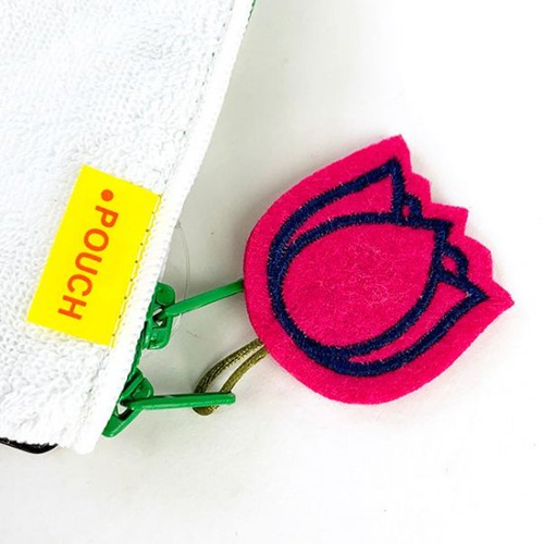 そう、このチューリップ!可愛くなりですか!?ホワイトカラーのポーチのアクセントにチューリップが良く映えます♪ファスナーのカラーがグリーンなのも良いですね。