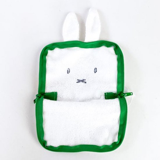 ポーチ全体がミッフィーのお顔になっているポーチです。アップで見てみると確かにタオル生地、ふわふわが触るたび気持ちいいそんな素敵ポーチ。ミッフィーのポーチは世の中にたくさんありますが、このポーチの特徴はファスナー部分にあります。