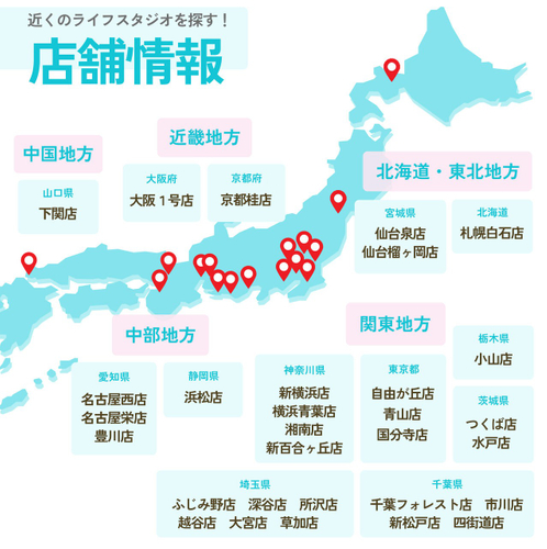 ライフスタジオは全国30店舗、こだわりのインテリア、おしゃれで可愛い衣装をそろえ、個性豊かなスタッフが皆様をお待ちしております。