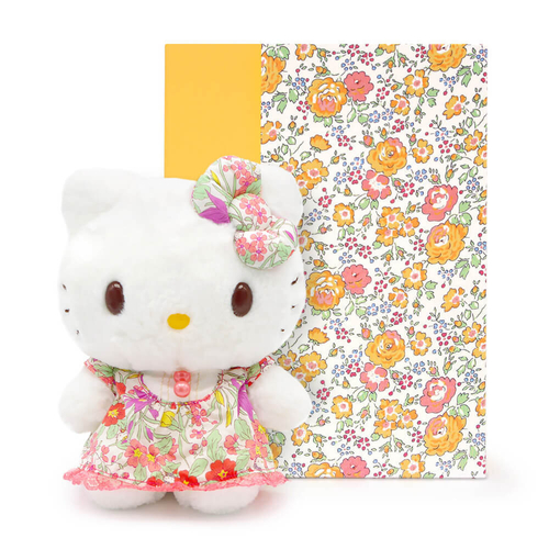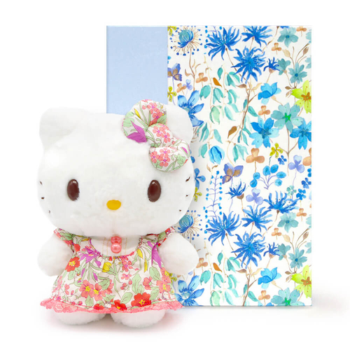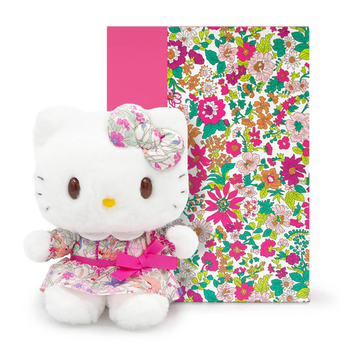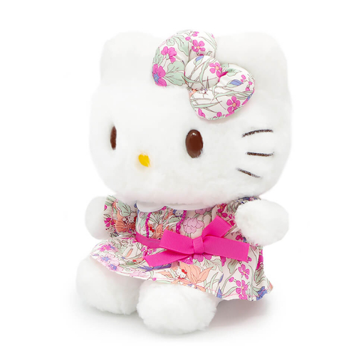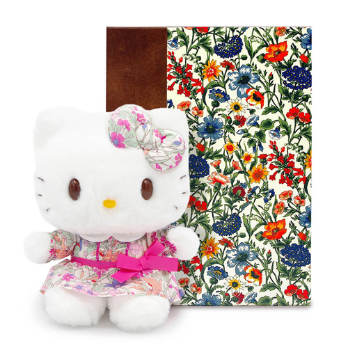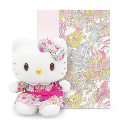 リバティ×ハローキティのぬいぐるみは、ハローキティ45周年を記念して誕生したリバティプリント柄のリボンとワンピースを着たハローキティのぬいぐるみです。(メーカー:ナカジマコーポレーション)