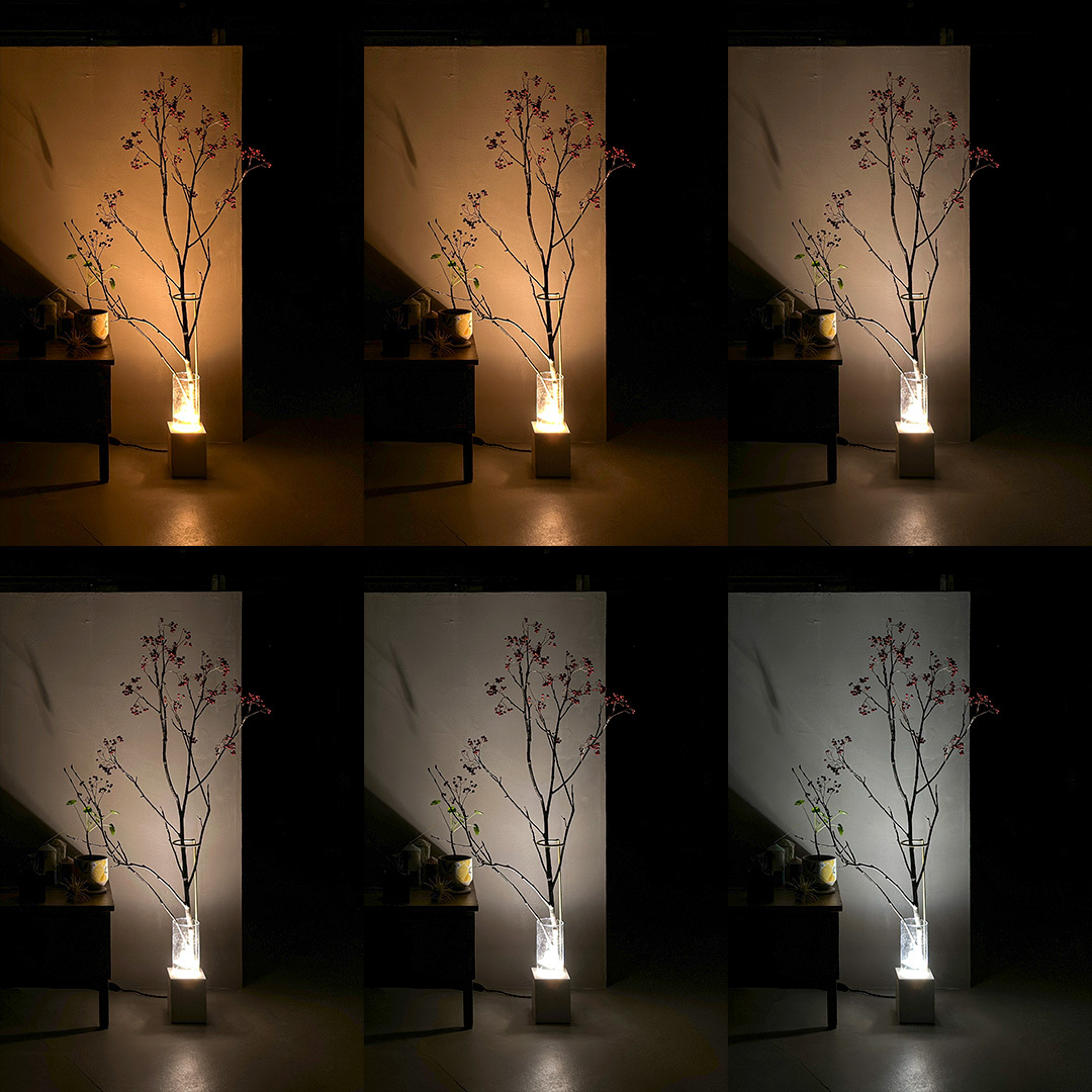 書斎の一角では上品に、さりげなく枝ものやドライフラワーを照らし、リビングではモンステラのような生命力あふれる植物を圧倒的に際立たせます。ホテルのエントランスやレストランの個室、ウェディング会場のデコレーションなど、あらゆる空間の演出を、もうワンランクアップさせます。