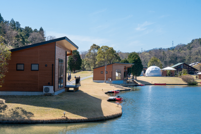 池の周りにある客室棟は、オープンデッキの2階建てヴィラ、日本初上陸のレインドロップテントやドームテントなどの様々なタイプの贅沢なプライベート空間。