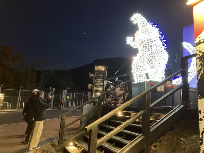 設置から早くも1カ月が経過し、アメリカ・香港・台湾・シンガポール・オーストラリアなど世界中のゴジラファンが兵庫県淡路島に大集合してくださいました!全身がライトアップされた高さ3mの「ゴジライルミネーション」は、バーニングゴジラ仕様で胸が赤く染まり、今にもエネルギーがあふれ出しそうで、「遠くから見てもハッキリとゴジラが輝いている」、「胴回りの赤い光がまさにバーニングゴジラ!」とファン大興奮のコメントも届きました。迫力満点のゴジライルミネーションで、一日中、夢中になれるニジゲンノモリを締めくくろう!