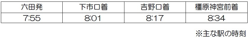 ・六田7時55分発橿原神宮前行き普通を増発します。