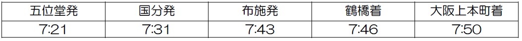 ・河内長野5時29分発大阪阿部野橋行き準急を5時24分発に変更し、河内長野からの始発列車を5分繰り上げます。