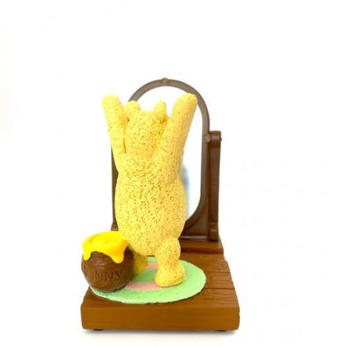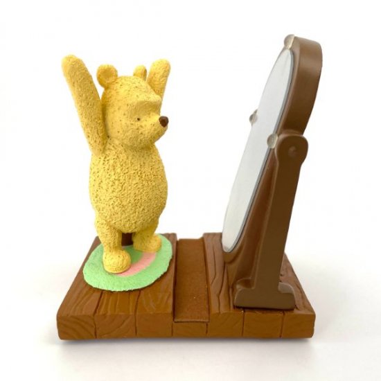 うしろにはしっかりとはちみつを準備して体操を頑張るプーです。鏡を見ながらイッチニイッチニ♪プーのお部屋の雰囲気が見れて素敵です◎