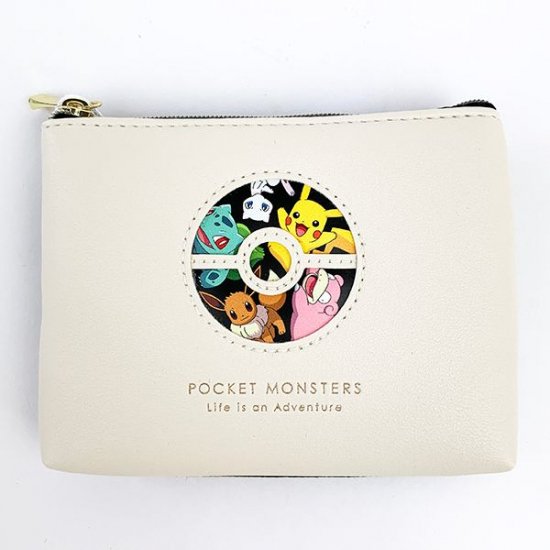 まずは使い勝手の良いティッシュポーチのご紹介です。モンスターボール型の窓からポケモン達が顔を出した、真ん中ワンポイントのデザイン。カラーはホワイトとブラックをご用意しました♪ゴールドの箔押しが高級感を演出します。