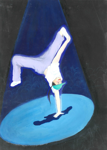 勉強して閃いたアイデアが自分の未来を明るく照らす絵を表現しました。