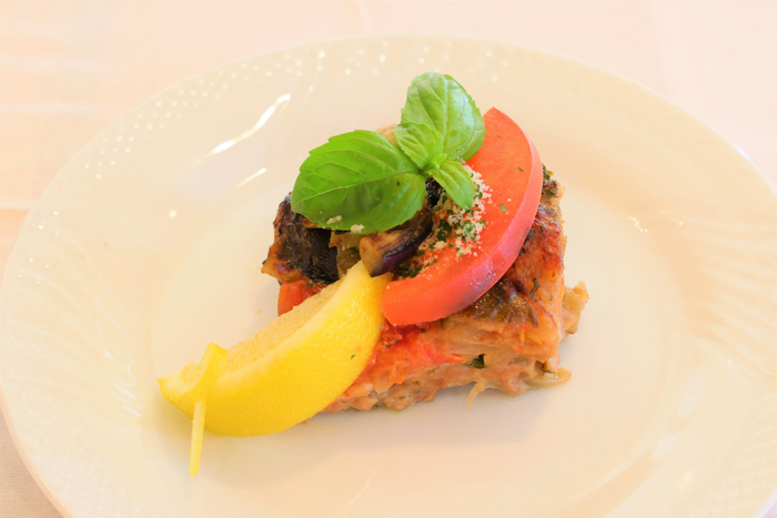 ・コンセプト:ギリシャを代表する料理「ムサカ」で使用する挽肉を、桃豚だけを小さく切ったものに変更。ナスやトマトで蒸し焼きすることで肉も野菜も軟らかくなり、高齢者も含め幅広い年代に食べやすくするよう工夫