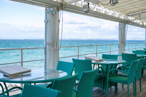 1階は豪快なシーフードメニューを大人数でお楽しみいただけるカジュアルシーフードレストラン、2階は目の前で広がる海を見ながら島の果実を使用した料理を片手にゆったりと過ごすことのできるカフェが展開されています。