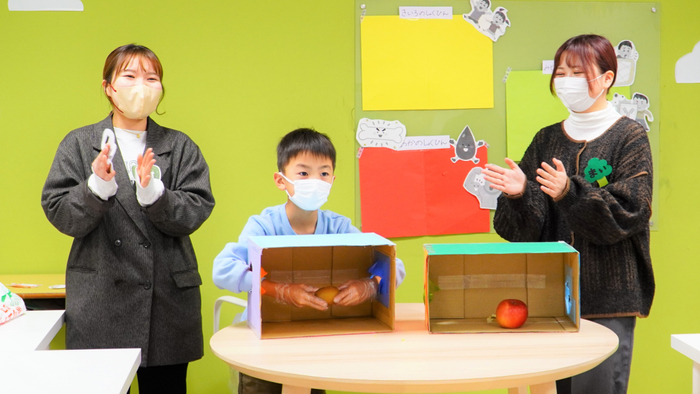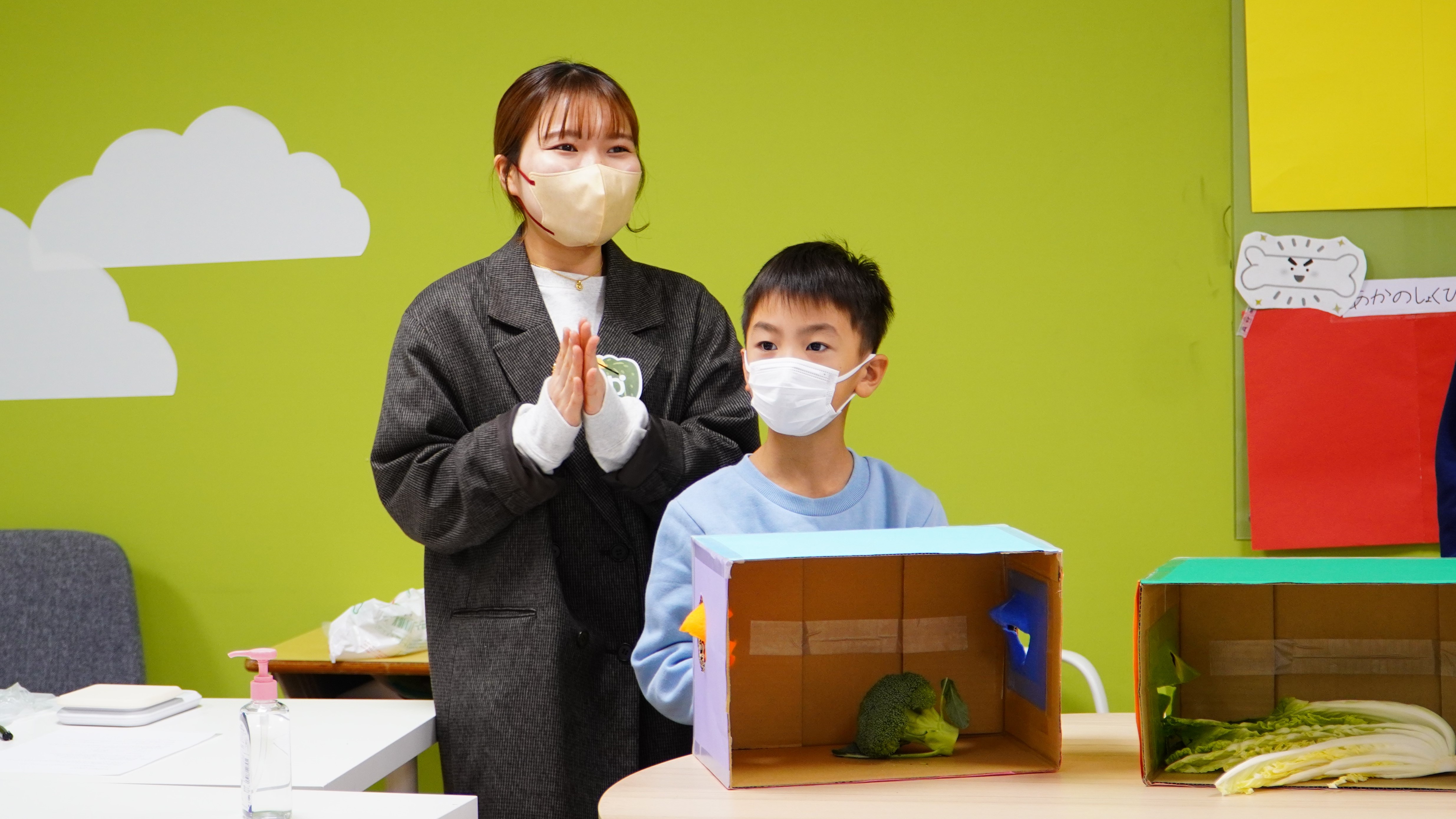 私が大学生になって初めてした食育イベントで、どのように企画したら楽しんでもらえるか、色んな野菜や3色食品群について知ってもらえるか沢山考えました。実際に野菜に触れてもらい学んでもらいたいと考え、箱の中に入れて、手で触った感覚から何の野菜か当ててもらうゲームを考えました。箱に入れた野菜と同じカードの野菜も作り、3色食品群に分けてもらったり工夫しながら企画し、学びを実践することができました。
