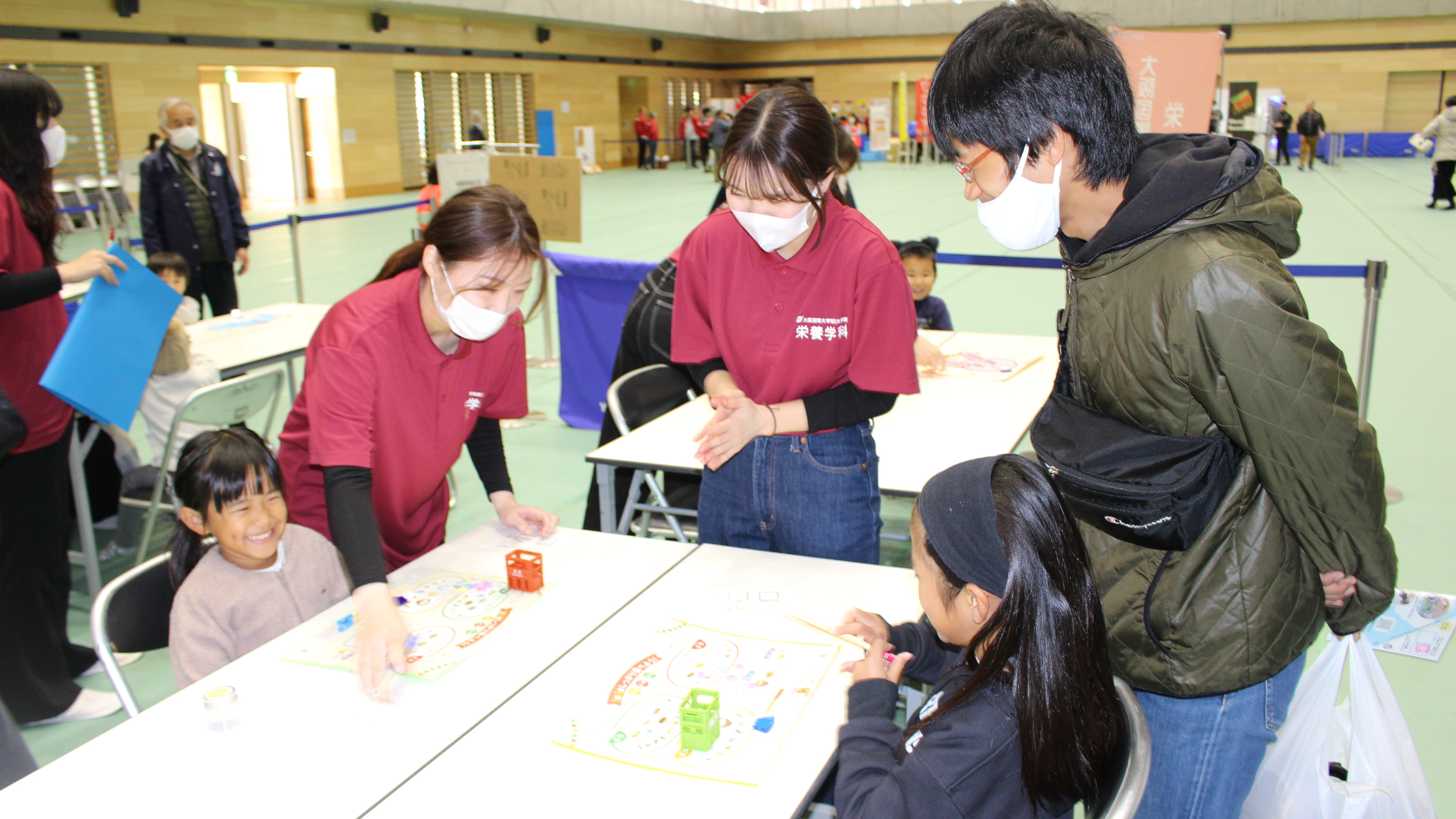 門真市が大学等と連携した子どもたちへの「キャリア教育イベント」に学生講師として体験イベントを開催し、参加者に栄養士の魅力的な仕事を実体験してもらいました。