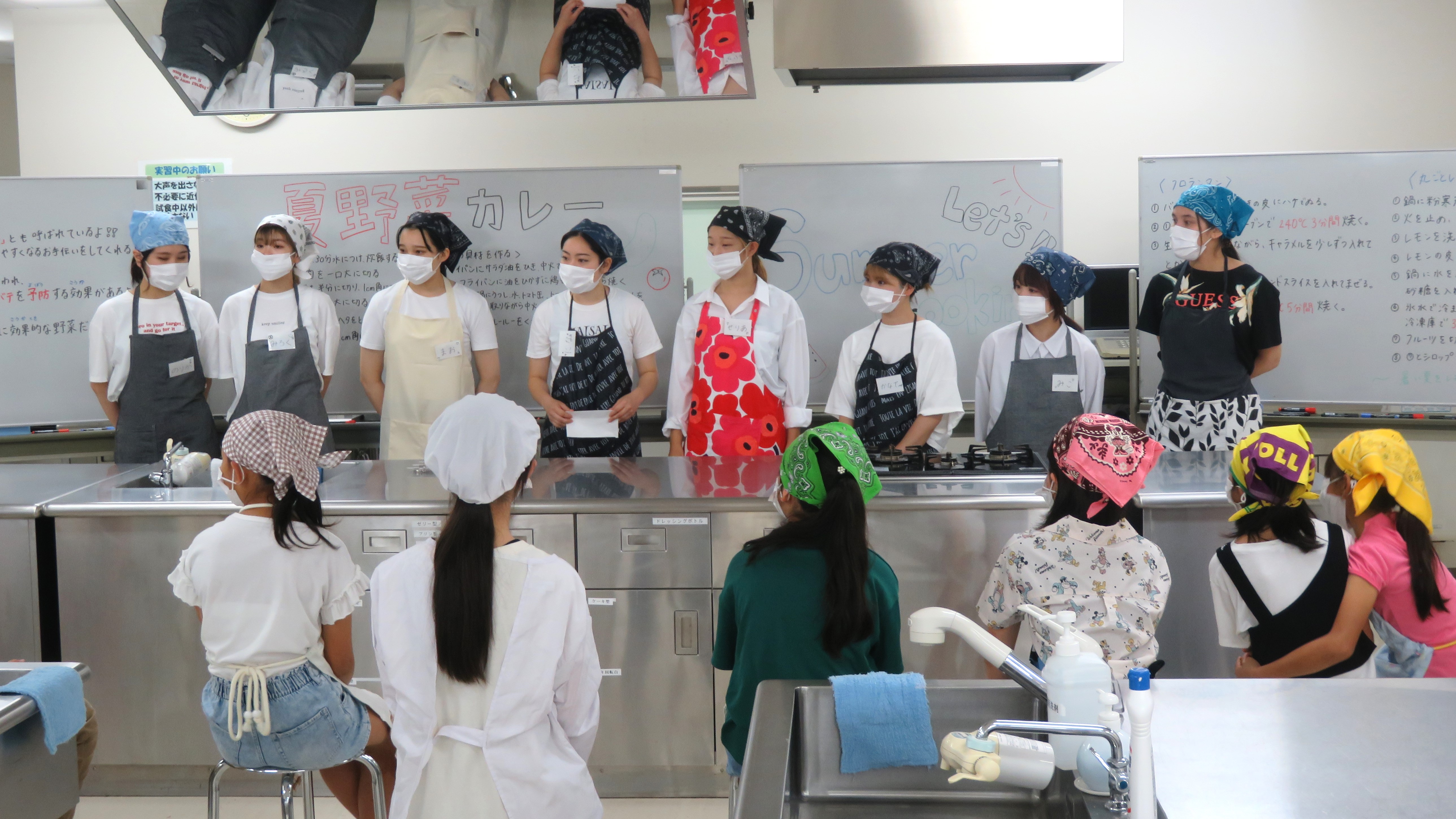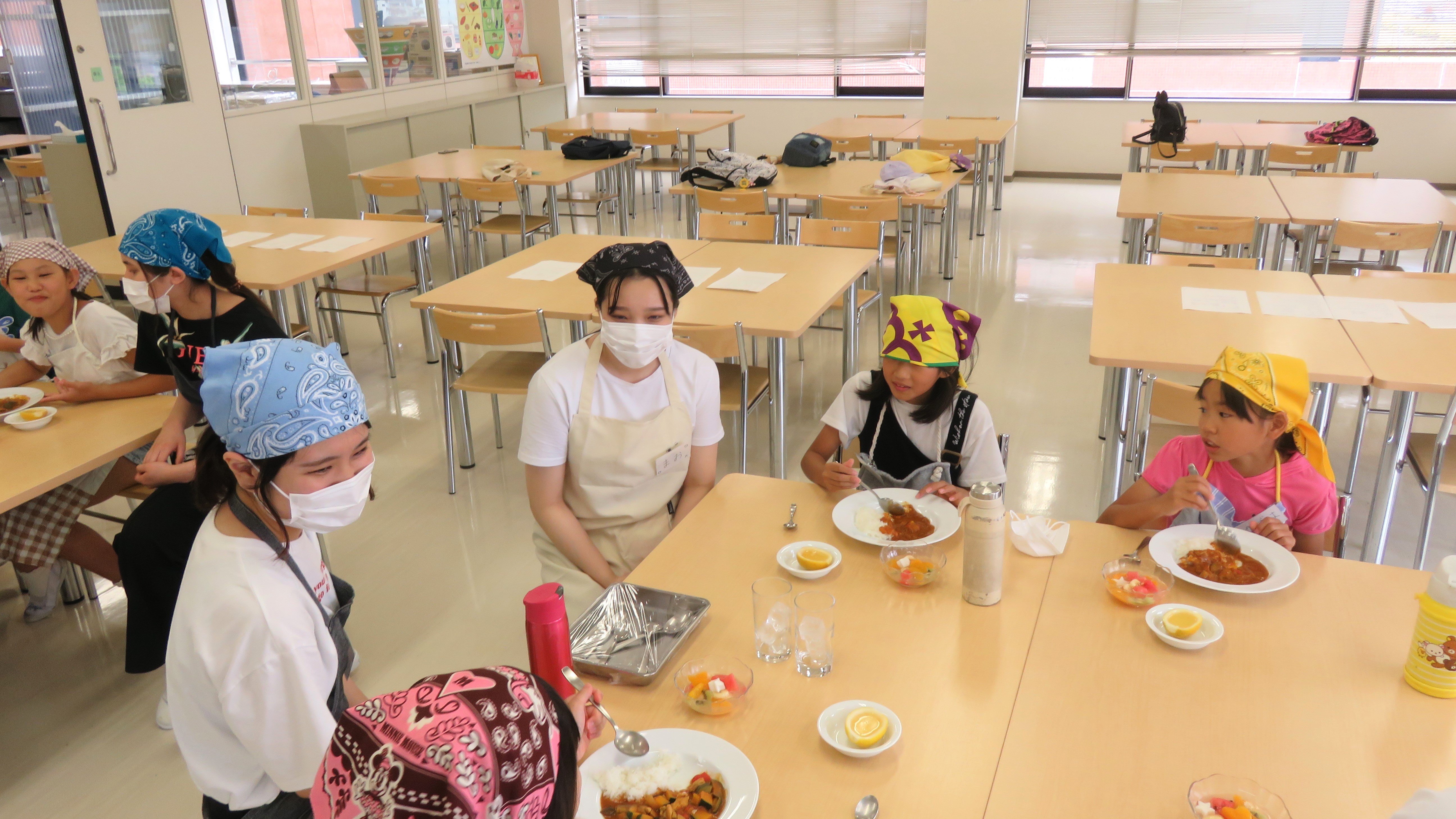 私は、小学生と一緒に夏野菜カレーと夏にぴったりなデザートを作りました。他の学生と共に、何度も試行錯誤して考えたメニューを、子どもに教えながら料理をするのは初めてで少し不安もありましたが、野菜が嫌いと言っていた子どもたちも美味しいと言いながら残さず全部きれいに食べてくれて嬉しかったです。