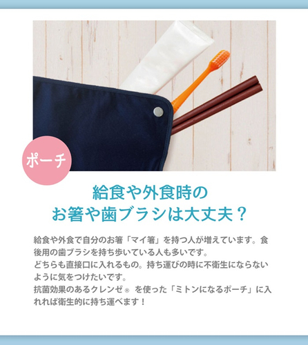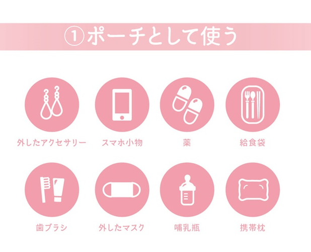 「接触対策」として直接接触、間接接触のどちらにも対応するミトンになるポーチ。