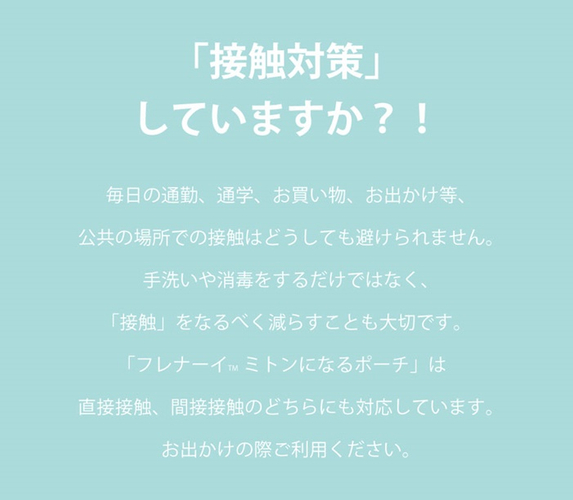 「フレナーイ ミトンになるポーチ」は直接接触、間接接触のどちらにも対応しています。