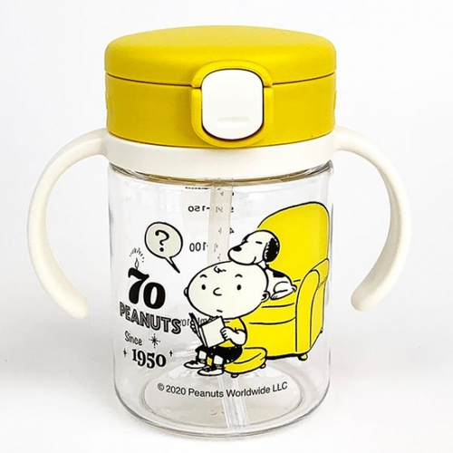 小さなサイズには、オレンジ色のフタがついたストローマグも♪スヌーピーとチャーリーブラウンの仲良しデザインが魅力です。260ml入るので、ジュース用にもピッタリですね♪