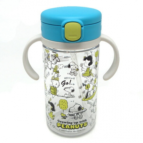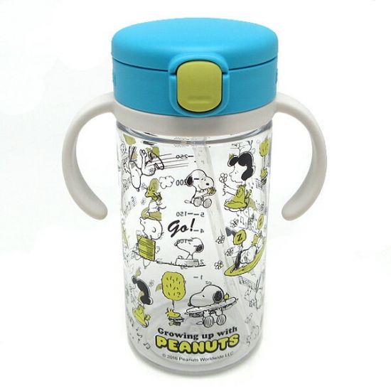 こちらはブルーストローマグ。スヌーピーやルーシー、チャーリーブラウンがデザインされた楽しい絵柄です。両手で持てるので、ストローで飲めるようになったばかりのお子さんも、飲みやすいんですよね。