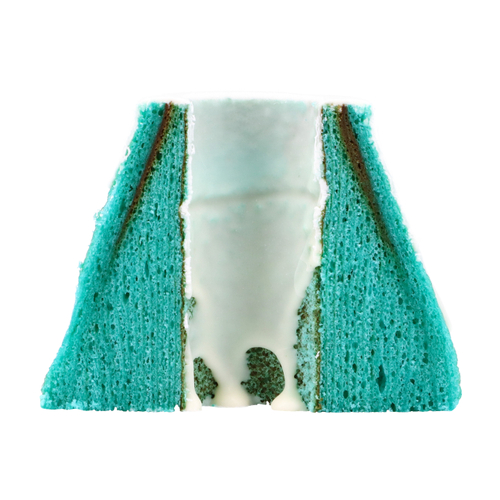 ■ 特徴 : 富士山型をしたバウムクーヘンで、バウムクーヘンの生地を青くすることによって富士山の山肌を演出、さらにホワイトチョコレートで富士山の雪を演出しよりリアルな富士山に見立てたバウムクーヘン。外側の山肌だけではなく、切った断面も鮮やかな青色となっています。
