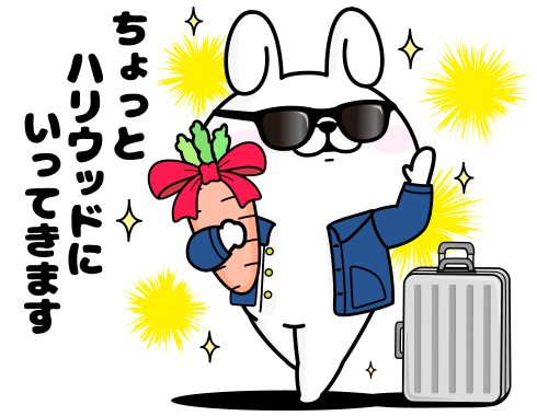 劇中のピーターに触発されて強烈な“うさキック“を披露する<うさぎさん>! もう1枚はピーターとのコラボ決定を聞いていきなりハリウッドへ向かおうとする<うさぎさん>。⼤きなニンジンは、もしかしてピーターへのプレゼント!?