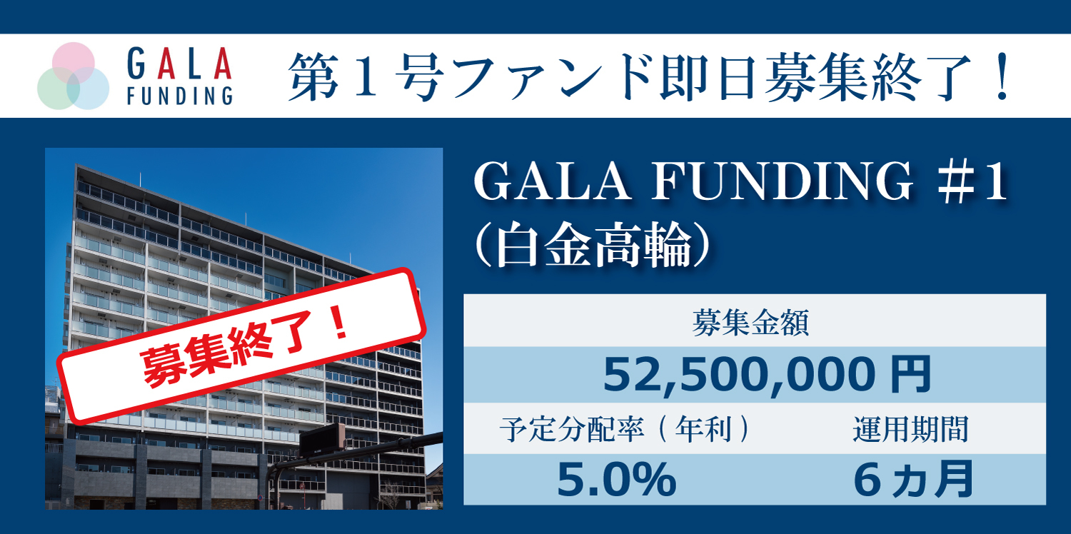 ~FJネクストグループの不動産投資 クラウドファンディングサービス「GALA FUNDING」~ 第1号ファンドが申込受付開始後、5分で募集終了!
