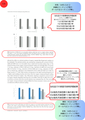 銅イオンのナノテクノロジーで万能型抗ウイルス性を発揮しており、各種バクテリア、エンベロープ有り無しウイルスに有効です。15分以内に99%不活性化を達成しており、99回擦った後も効力は持続します。有効成分として銅イオンを採用しているため、アルコールのように気化して効力を失うことはなく、乾燥しても再度水で潤いを与えればコーティングシートとしての機能が復活します。各家庭での超長期備蓄に最適な防災備品です。
