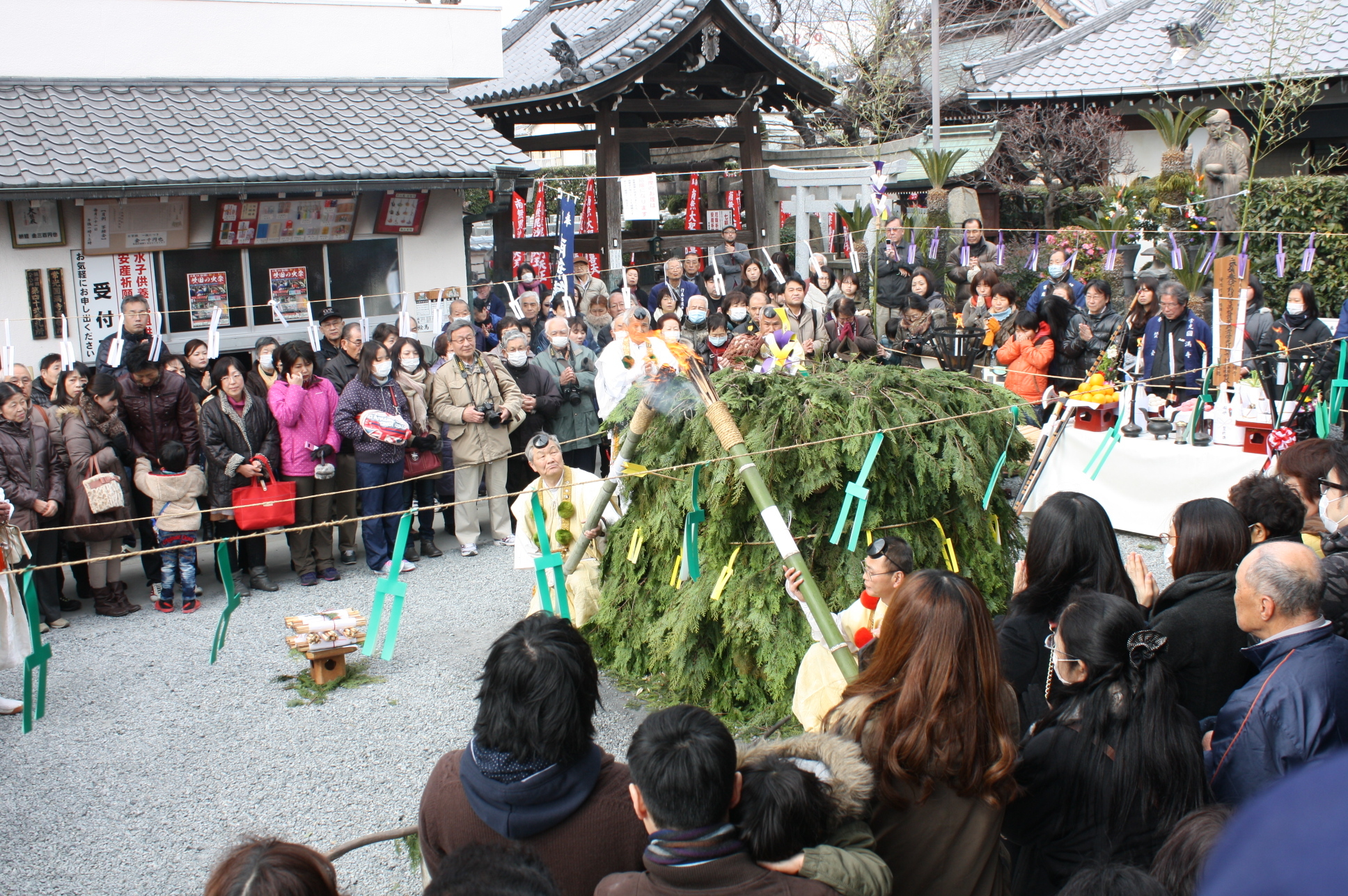 常光円満寺は、吹田の山伏(やまぶし)発祥の地であり、2024年2月11日(日)に行われる『吹田の火祭』は、狭い境内で行われる名物であり、一つの伝統行事として長く続いています。