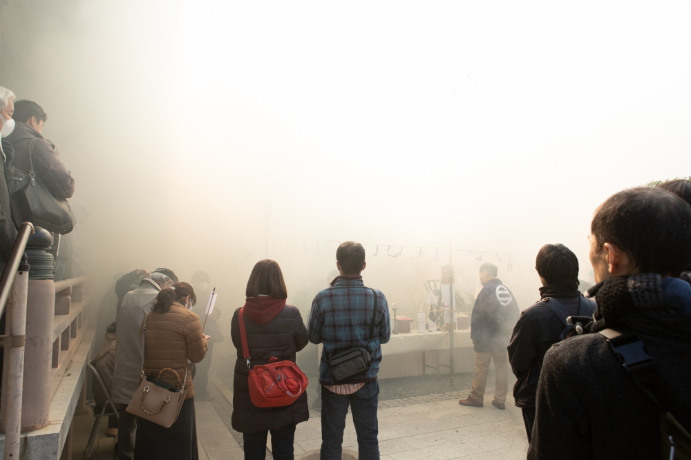 街中でビルに囲まれる狭い境内で『逃げ場のない火祭』として知られる常光円満寺の火祭。とても迫力ある炎の祭典を間近でご覧いただけます。また厄除けになるといわれている護摩の煙は、風下に立っていると全身でお受けいただくことになります。