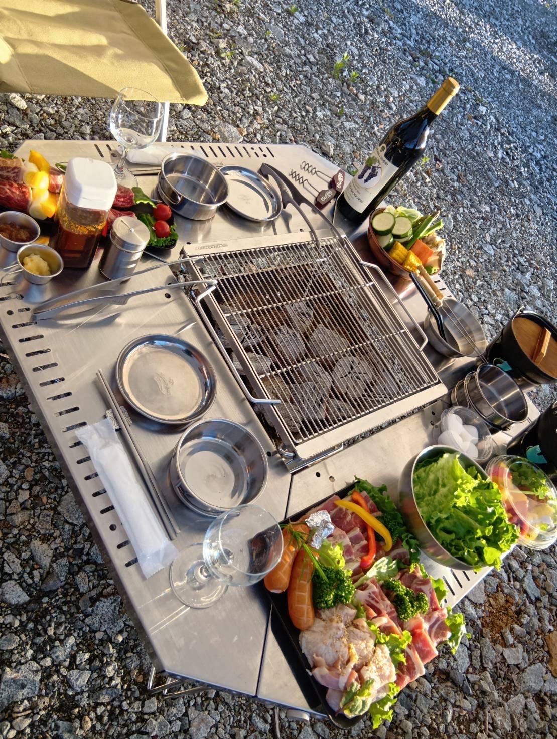 夕食は「住箱」。スタッフがお部屋まで食材をお届けし、客室前に広がるSnowPeakのタープ下のバーベキュースペースでお楽しみいただけます。