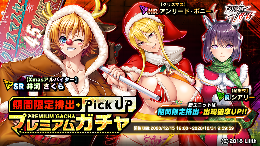 期間中は新規キャラクター「『【Xmasアルバイター】井河 さくら』『【クリスマス】アンリード・ボニー』『【耐聖夜】シアリー』」の出現確率がアップしております。