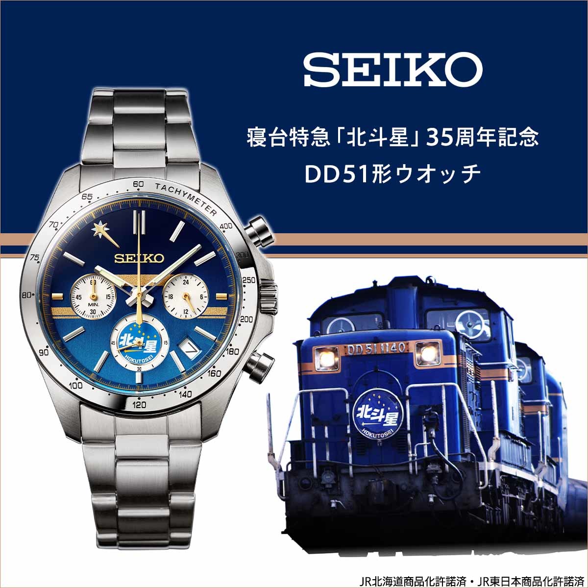 最後のブルートレイン「北斗星」の35周年を記念して DD51重連仕様の「北斗星」をイメージした 限定のセイコー腕時計が登場!