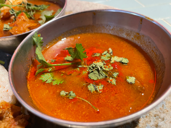 - **タイ風シュリンプチキンカレー**: 海老とチキンの出汁が効いた酸味のあるカレーで、寿司屋ならではのプリプリの海老が特長。