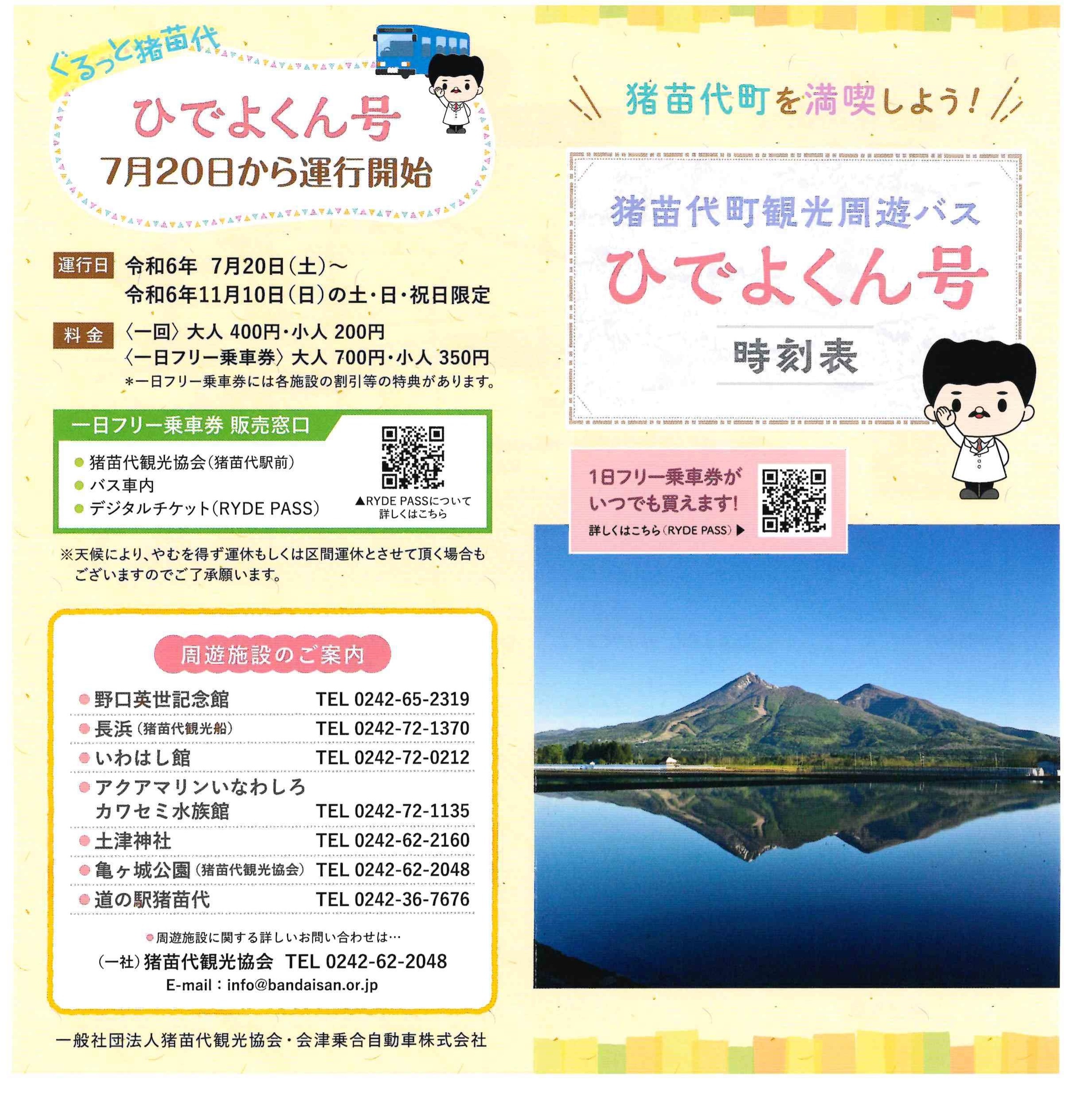 福島県猪苗代町の観光地を周遊するバス「ひでよくん号」の運行が2024年7月20日より町内で開始しました。11月10日までの土、日曜と祝日に走ります。