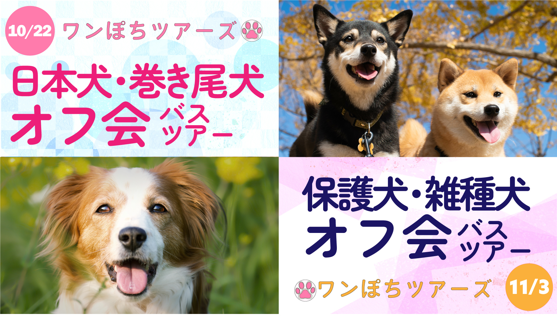 今回の犬種限定オフ会バスツアーでは、ワンちゃん同士、飼い主さん同士の交流を通じた新たなコミュニティを楽しむとともに、愛犬と秋を感じるひとときをお過ごしください。