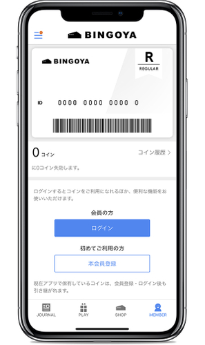これまで配布していた「BINGOYAメンバーズカード」(プラスチックカード)をアプリ上のデジタル会員証へ移行。以前のメンバーズカードで溜まっていたポイントもアプリに統合することが可能。溜まったポイント数や会員ステータスは会員証画面でご参照いただけます。