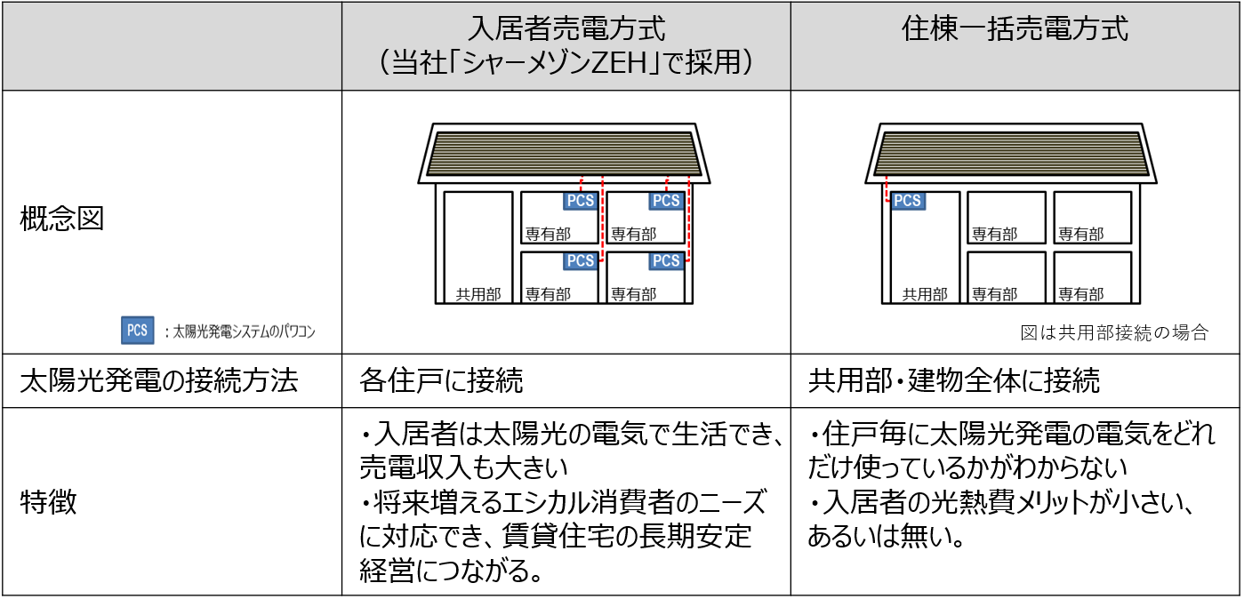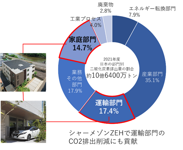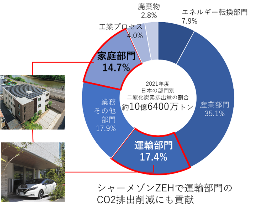 積水ハウス株式会社は、入居者が光熱費メリットを実感できる、各住戸で太陽光発電を利用できる入居者売電方式の賃貸住宅のネット・ゼロ・エネルギー・ハウス「シャーメゾン ZEH」において、住戸毎に専用接続する EV 充電設備を設置する体制を全国で整えましたので、今後推進してまいります。
