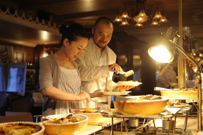 その後、時代の変化を受けて、2005年にスカイデッキを新設するとともに、船内演出を一新。「ミシガンらしい外国の雰囲気」に「びわ湖ならではのおもてなし」を加え、現在では、デッキから美しいびわ湖の景色を望めるだけでなく、多彩なお料理や音楽ライブショー、観光案内なども楽しめる総合エンターテイメントクルーズ船として、大人からお子さままで幅広い年齢層のお客様にご乗船いただいております。