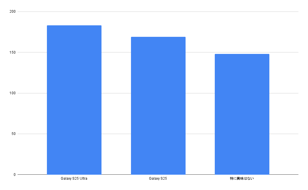 最上位モデルのGalaxy S25 Ultraへの関心が最も高く、ハイエンド機能への需要の高さが伺えます。