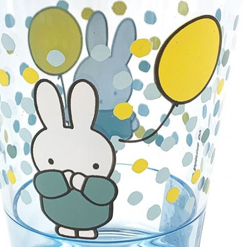 ブルーのグラスにレモン色の風船を持ったミッフィーのイラストがさわやかなデザインです。周りにはたくさんのコンフェッティが舞っています。