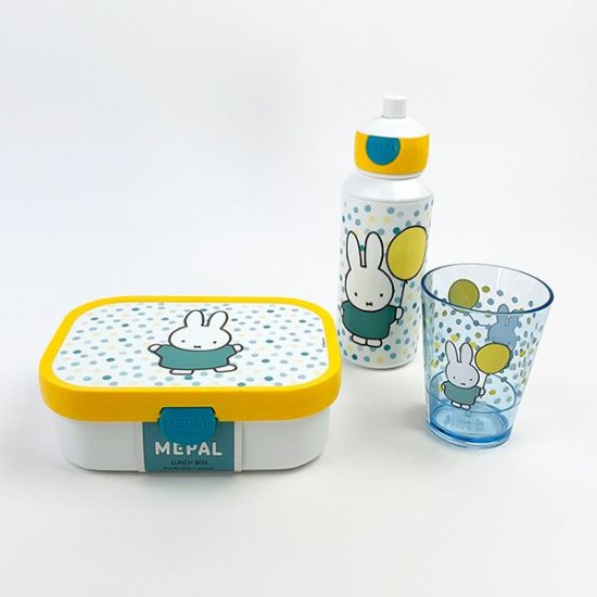 コンフェッティの吹雪の中ではしゃぐミッフィーが描かれたランチボックス。